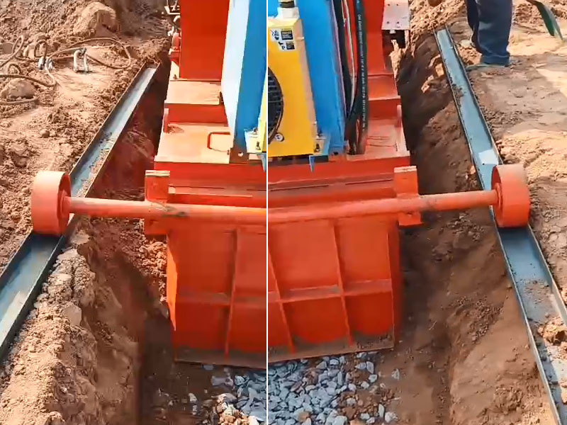 水渠機放入溝模內,槽鋼輥道已經沒有作用了,槽鋼輥道是輔助機器行走直線的。但是這么惡劣的現場,已經用不上槽鋼輥道了。在作業過程中要把槽鋼輥道撤掉。